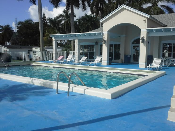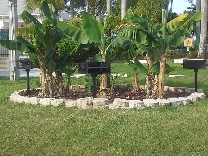 The clubhouse is a spacious air conditioned building features ceramic tile floors, restrooms and a functional service kitchen for dinners, parties, etc. The clubhouse is equipped with tables and chairs for 100+ guests, plus adjoining poolside patio facilities. Nearby the clubhouse, next to the horseshoe pit is a grilling area with three grills and picnic tables.